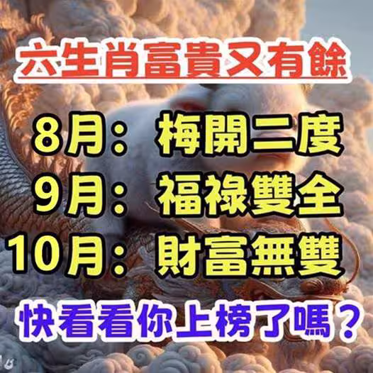 8月梅開二度,9月福祿雙全,10月財富無雙