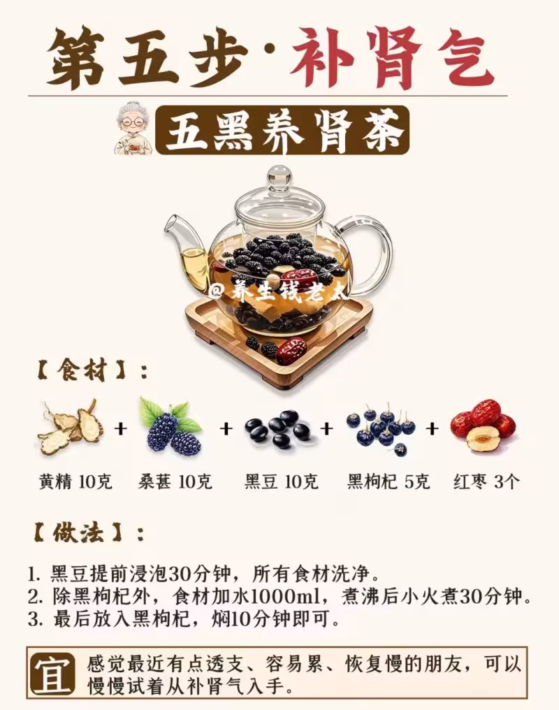 【適合】腎為先天之本,養好腎氣,整個人才有底氣!容易累、恢復慢的朋友。