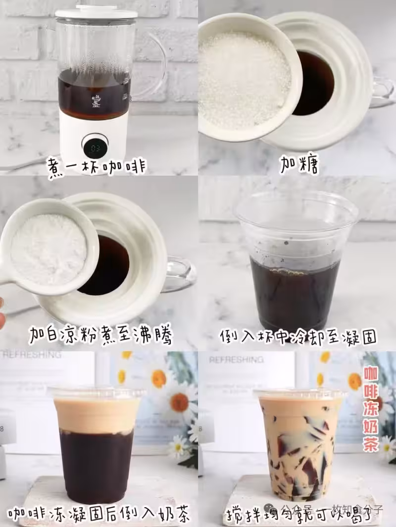 食材:咖啡液300ml|糖20g|白涼粉12g|牛奶150ml|紅茶包1個