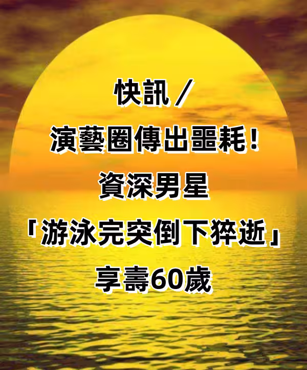 快訊/演藝圈傳出噩耗!資深男星「游泳完突倒下猝逝」享壽60歲...