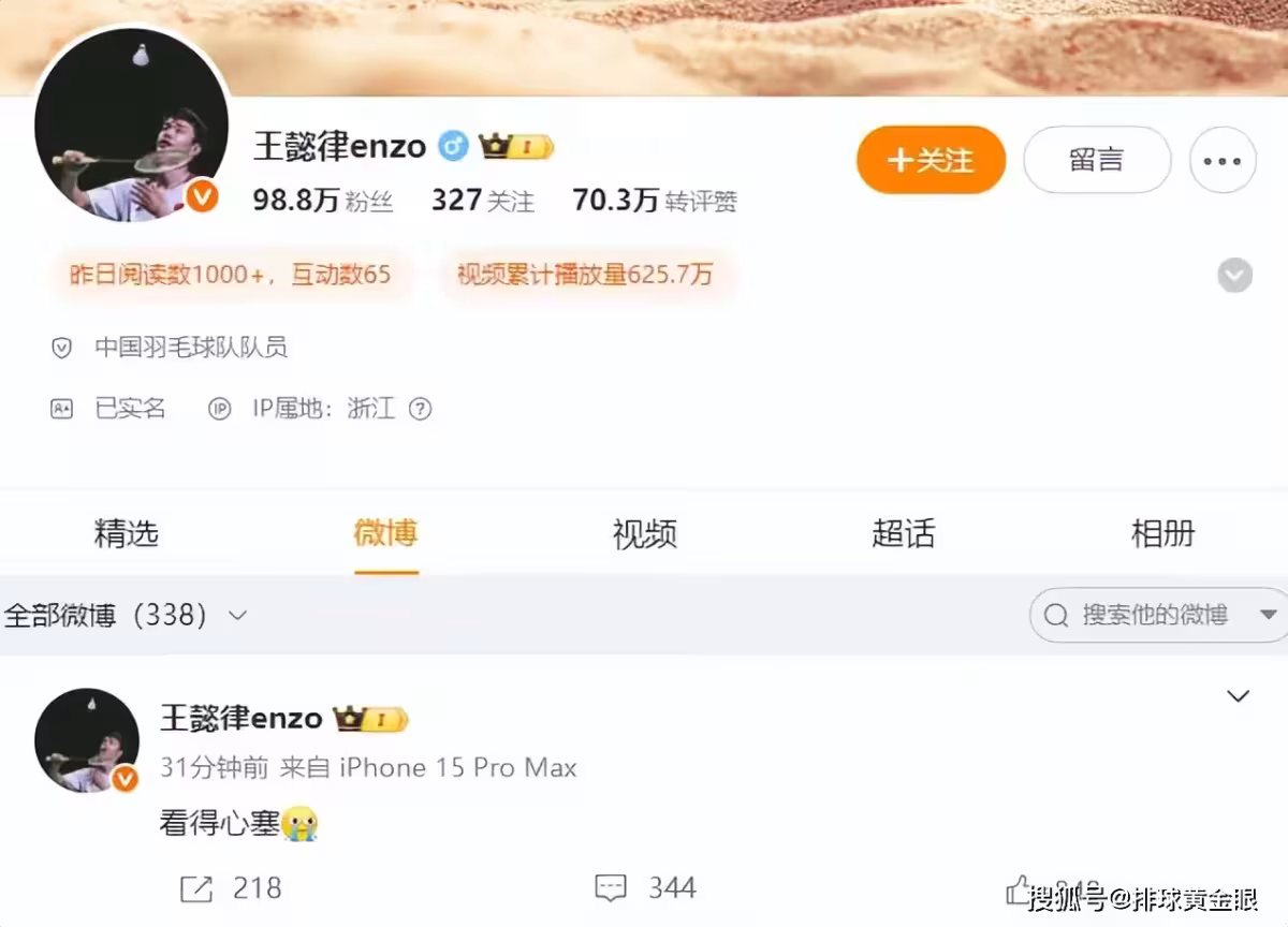 當看到黃東萍/馮彥哲首戰就出局後,黃東萍的前搭檔王懿律通過社媒發表了自己的看法,他直接寫道:「看得心塞。」馮彥哲賽後表示:「因為這個結果我自己覺得並不是特別滿意。但是現在事情已經發生了,只能去調整好心情,然後去面對這個事情。」
