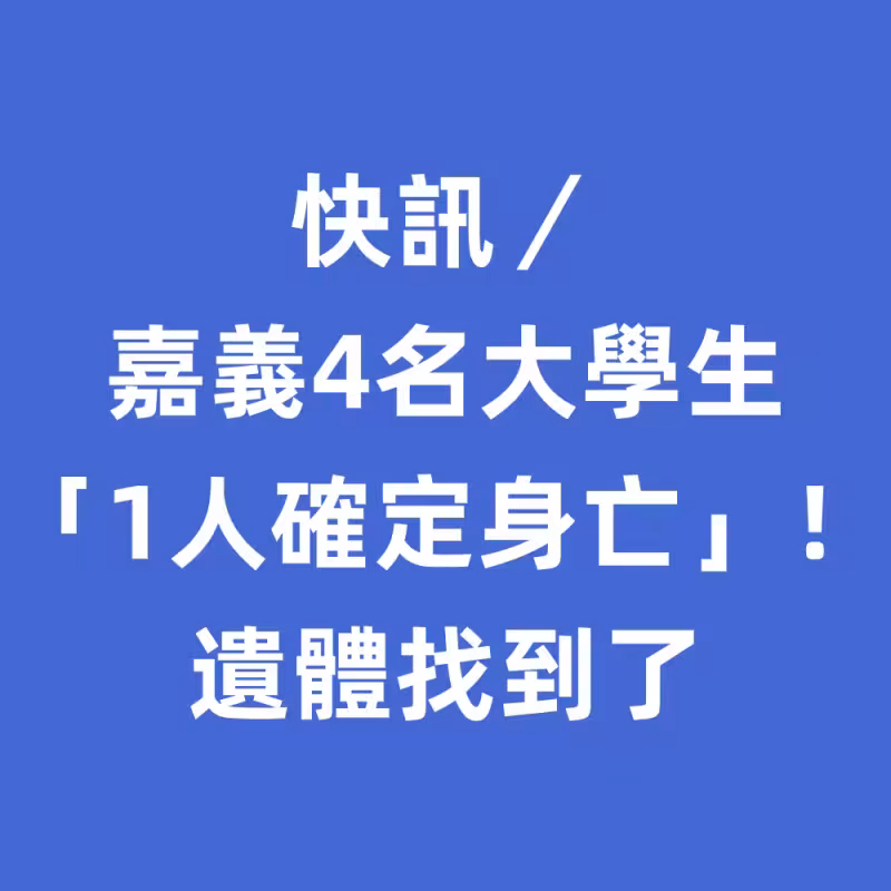 快訊/嘉義4名大學生「1人確定身亡」!遺體找到了