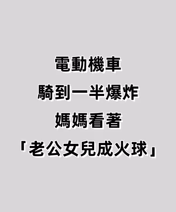 突發/電動機車騎到一半爆炸 媽媽看著「老公女兒成火球」