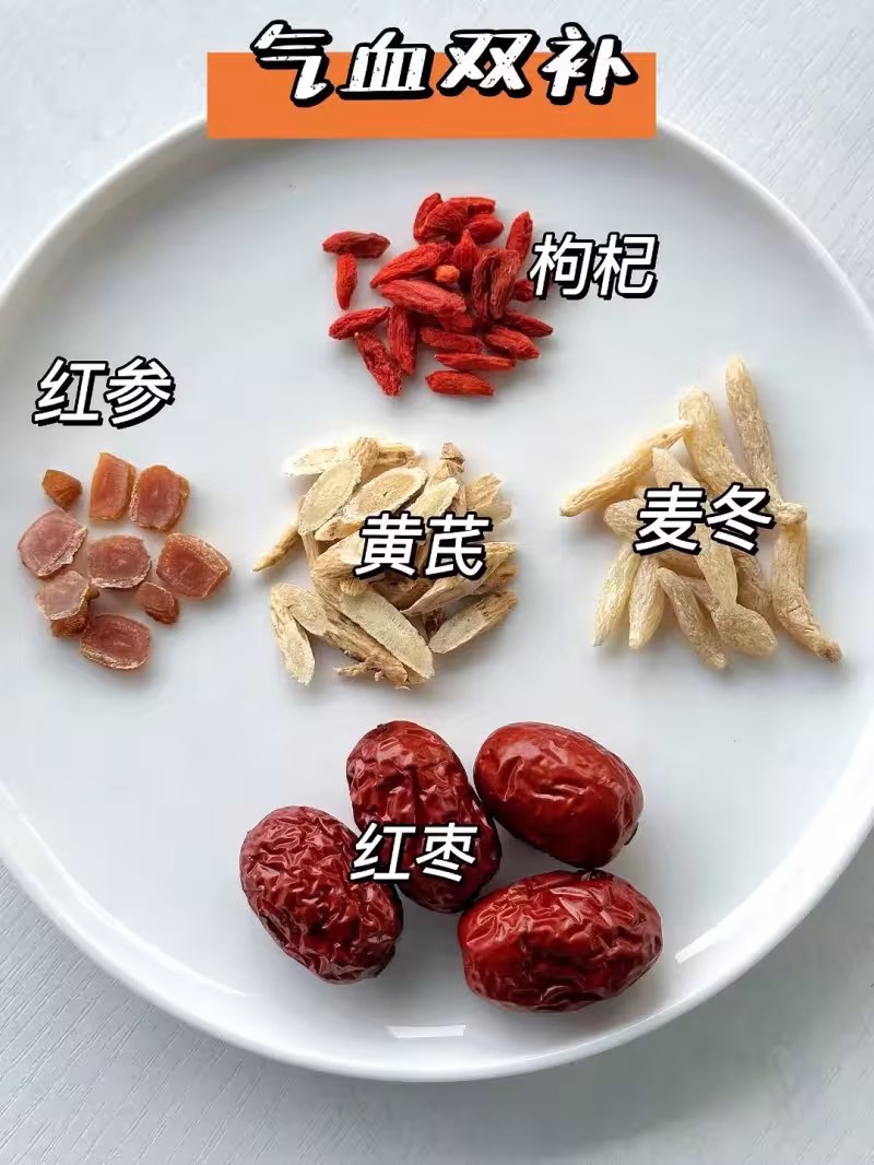 食材其實很簡單,去藥店或者超市都能買到。需要準備紅棗四顆,麥冬四克,紅參三克,黃芪五克,枸杞三克。這些材料都很常見,也不貴,每次煮一壺可以用好幾次。