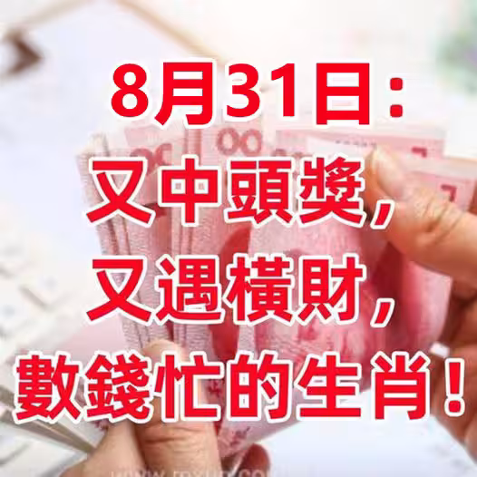 8月31日(8月最後一天)又中頭獎,又遇橫財,數錢忙的生肖!!