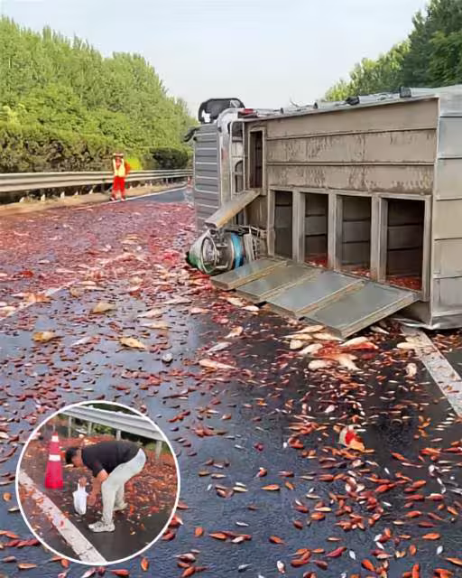 貨車在高速公路上翻車,車廂內貨物「全灑落行車道」,路人細看後驚恐:竟都是活物!