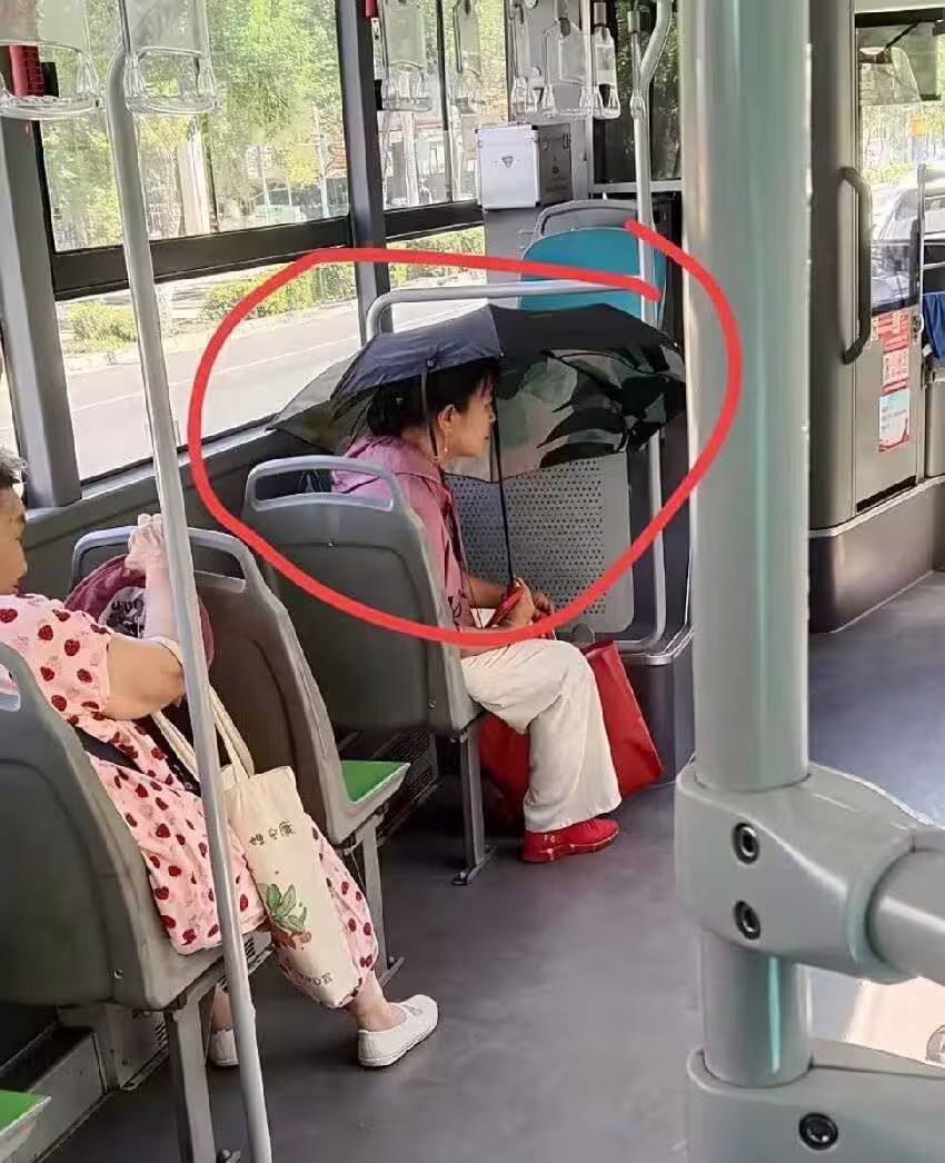 公車驚現「遮陽傘」大姐! PO網吐槽後,網友放大照片第3秒集體道歉