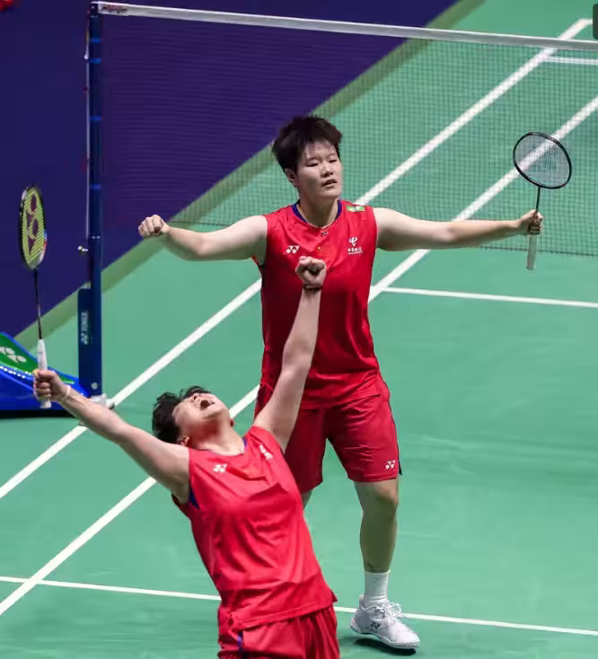 決賽日前兩場比賽國羽2連敗,給了第三場出戰的聖壇組合非常大的壓力,好在她們面對世界第二的陳康樂/蒂娜,搶出了一個不錯的開局,給自己吃下了定心丸,首局以21-14順利拿下,儘管第二局陳康樂/蒂娜在落後的情況下,以22-20逆轉扳平大比分,但決勝局聖壇組合沒有再給對手機會,一鼓作氣以21-17拿到了職業生涯首座世錦賽女雙冠軍獎盃。