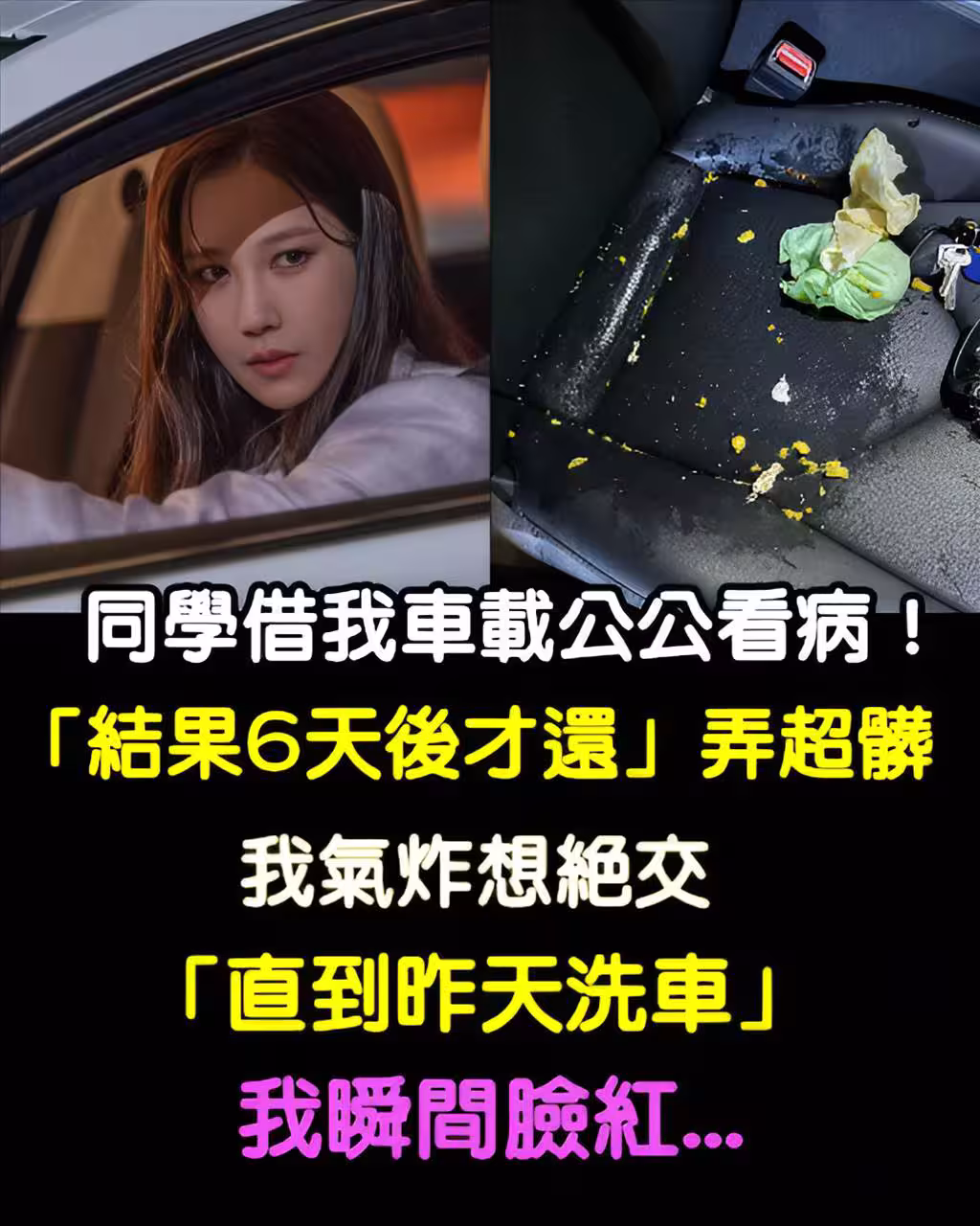 同學要載公公看病!忙和我借車「結果6天後才還」還弄超髒 我氣炸想絕交「直到昨天洗車」我瞬間臉紅了