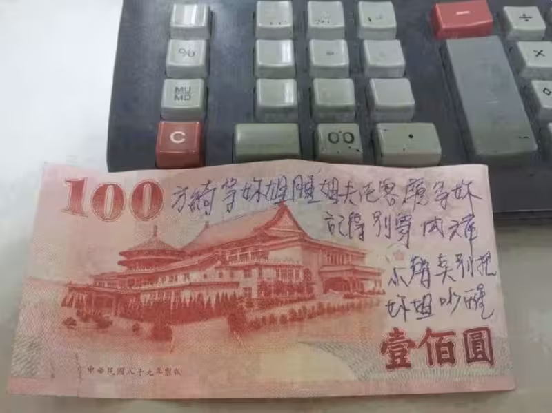 偷吃小姨子?100元鈔票上寫著「姐夫在客廳等你」 網友「加了標點符號」竟變好老公