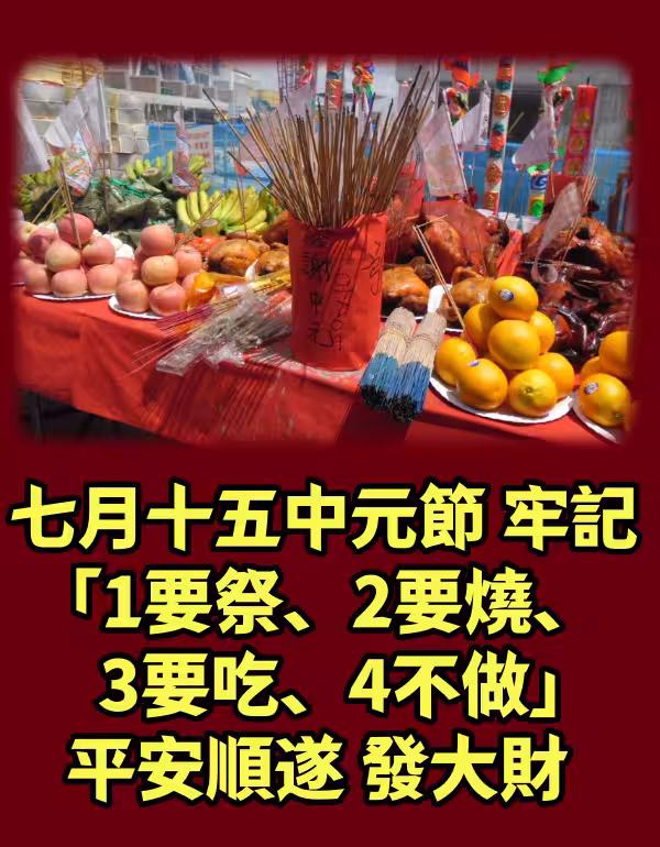 七月十五中元節! 牢記「1要祭、2要燒、3要吃、4不做」平安順遂發大財!