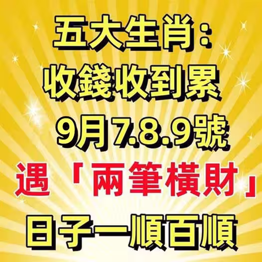恭喜了7大生肖,在未來三天( 9月20~23日)即將有一筆橫財,準備好收錢吧