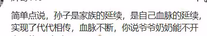 可能正如一位網友說的:「孫輩是家族的延續,是血脈的延續,爺爺奶奶當然開心了。