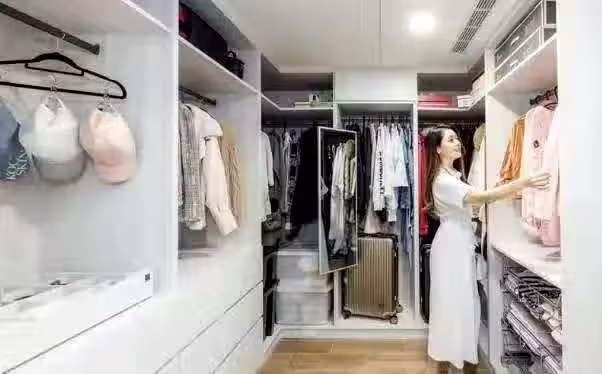 每一件衣服都是整整齊齊的擺放著,任何一個女人,都會渴望擁有這樣的衣櫃。