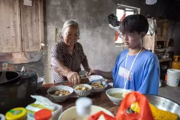 「我現在覺得日子挺幸福的。我有學上,有奶奶,還有一個小事業(小賣部)。」王偉旗笑了,陽光透過窗欞照在少年的臉上,在發光。