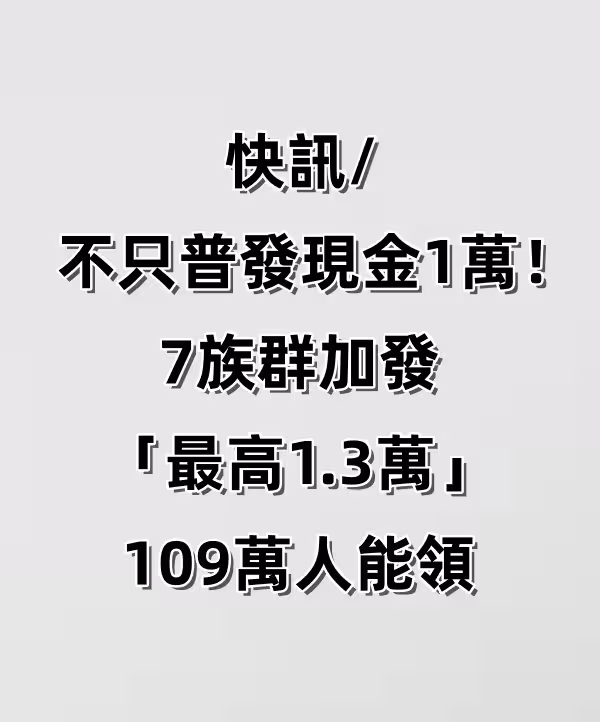 快訊/不只普發現金1萬!7族群加發「最高1.3萬」 109萬人能領