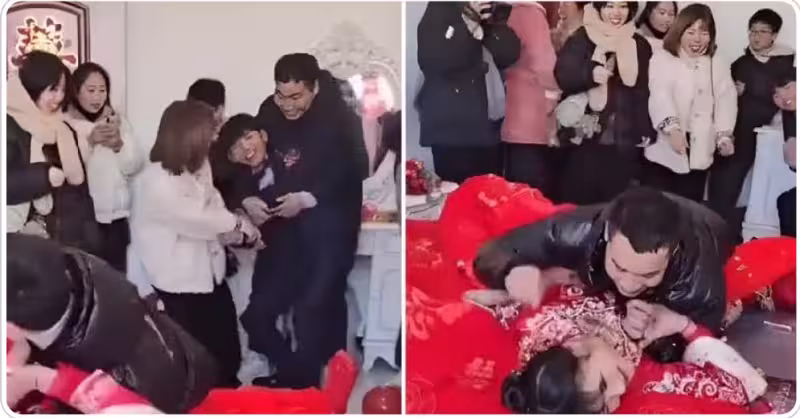 婚禮現場伴郎「硬趴在新娘身上」,新郎卻被眾人嬉笑阻,網見他「抬頭1表情」怒了:就是故意的