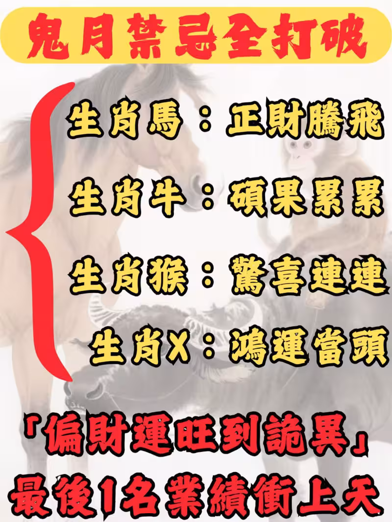 鬼月禁忌全打破!4生肖「偏財運旺到詭異」最後一名業績衝上天