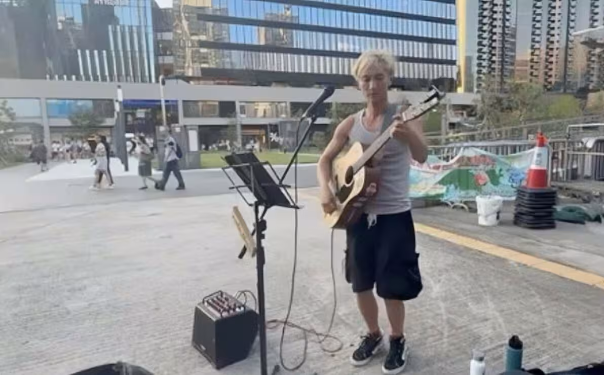 雖說陳薇總在社交媒體上「放負」,但周永恆本人沒有做出任何回應。反而,在近日有網友就在香港街頭偶遇周永恆,發現他正在拿著吉他,在烈日下賣唱。