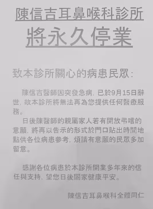 消息一出,外界都相當不舍,前來Google Maps留言,「上學的路上都會路過這間診所,小時候也去過很多次,沒想到今日聽聞噩耗,謝謝您為大家治病,辛苦了,一路好走!」、「謝謝陳醫生對孩子們的照顧!RIP」、「謝謝陳醫師的奉獻」、「從小看到大,聽到這消息直接嚇到」、「謝謝陳醫師為無數病人恢復健康,侄子每次來看醫生都特別跟他聊上好幾句像朋友一樣,謝謝您,辛苦了!