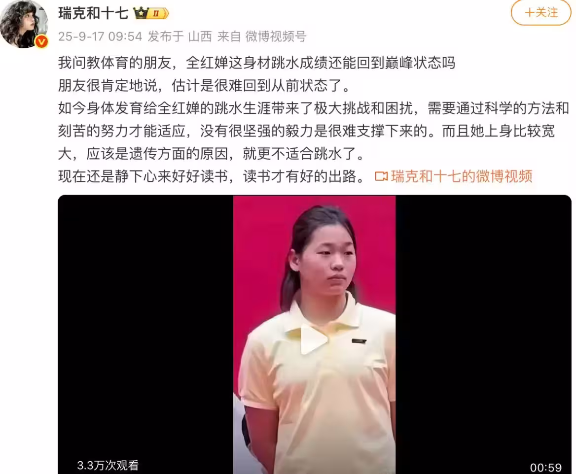 圈內人士認定全紅嬋已難返巔峰+進半退役狀態 網友:享受讀書生活