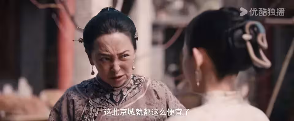 等到柴碧雲扮演的女主閨蜜康二妞再次登場,真是要崩潰了,又是瘋瘋癲癲的演繹,這個劇組的表演都主打一個外放誇張型啊!韶華在北京遇到了淪落青樓的二妞,二妞得知好姐妹不能贖自己出去後,就發瘋了,大吼大叫。本來臉就塗得煞白,還是大紅唇,就很嚇人了,再大吼大叫,真是像鬼一樣,可以直接去演恐怖片了,看她瞪大眼的樣子,竟然有種女裝大佬的感覺。