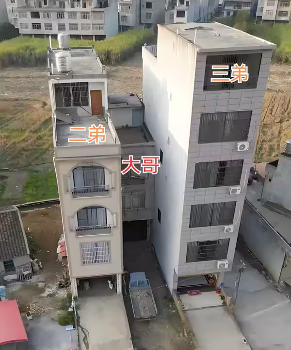 可大哥一看就火了:二弟家5層帶露台,三弟家6層有電梯,唯獨自己的厝只有4層,還少了停車位。