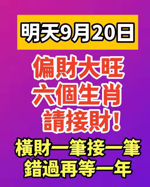 今天9月20日偏財大旺,六個生肖請接財!橫財一筆接一筆!錯過再等一年
