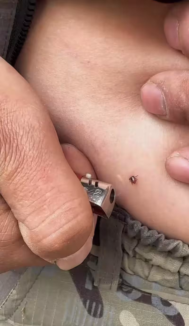 之前一個醫生就說他接診了幾個孩子,就是家長用手把那個蜱蟲給拔了,結果口器殘留在裡面,最終只能打麻醉,開了一個小口把蜱蟲的頭給拔出來。