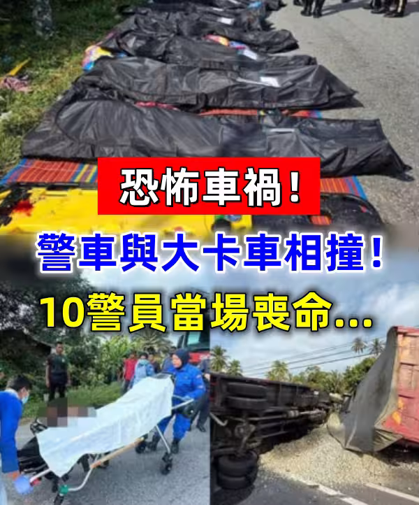 恐怖車禍!警車與大卡車相撞! 10警員當場喪命!