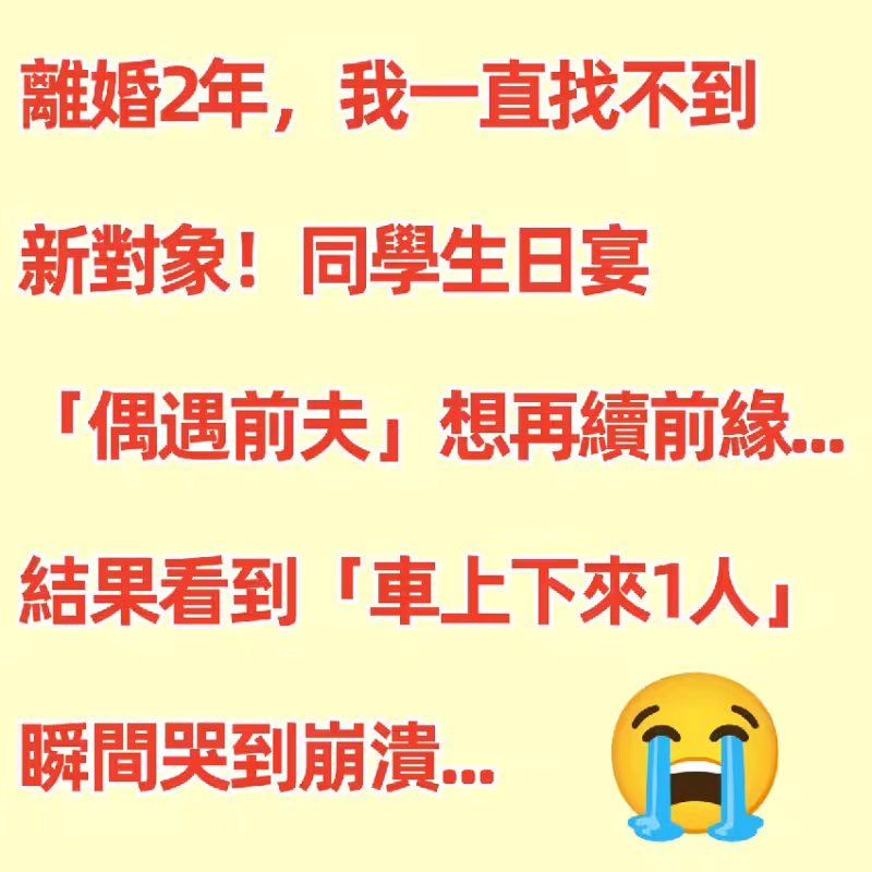 離婚2年,我一直找不到新對象!同學生日宴「偶遇前夫」想再續前緣...結果看到「車上下來1人」瞬間哭到崩潰