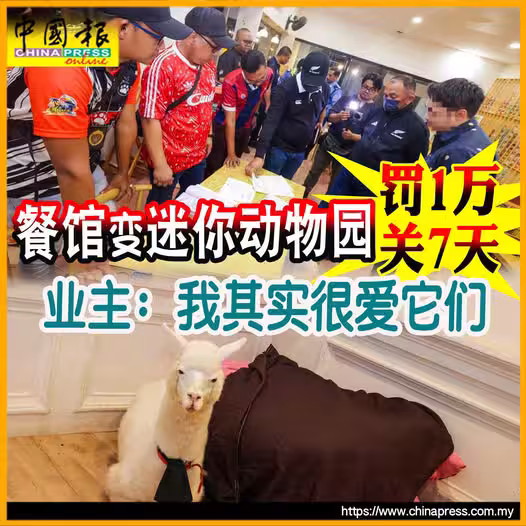 (馬六甲22日訊)馬六甲市區一家售賣速食麵的餐館,因飼養並展示羊駝,以及另外22隻動物包括羊、鴨、鵝、兔子和貓,違反營業條例,被馬六甲歷史城市政廳取締,下令關閉7天清理,並開出總額1萬250令吉罰單。