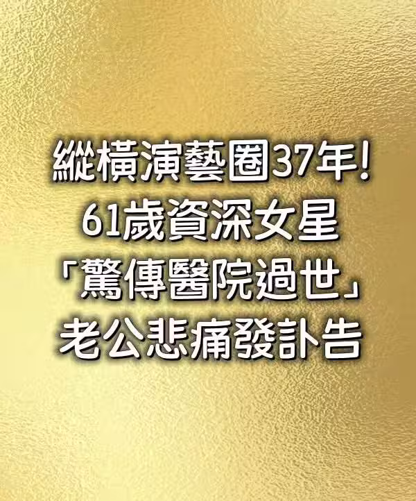 縱橫演藝圈37年!61歲資深女星「驚傳醫院過世」老公悲痛發訃告。