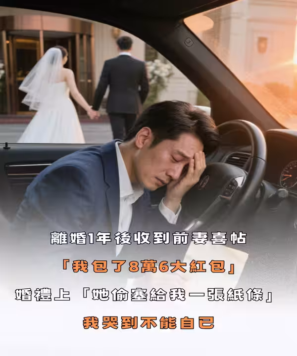 離婚一年後收到前妻喜帖!婚禮當天「我包了八萬六大紅包...」 婚禮上「她偷塞給我一張紙條」我哭到不能自已
