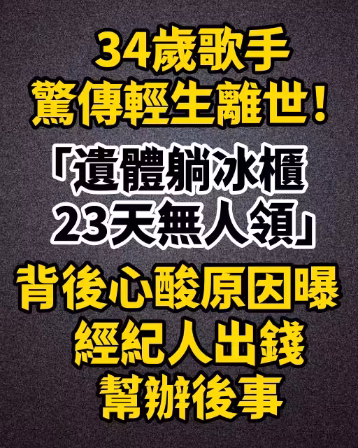 34歲歌手驚傳輕生離世!「遺體躺冰櫃23天無人領」背後心酸原因曝 經紀人出錢幫辦後事 -