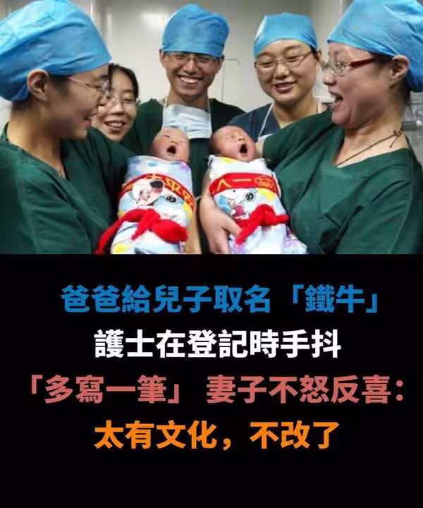 爸爸給兒子取個小名「鐵牛」 護士在登記時手抖「多寫一筆」 妻子不怒反喜:太有文化,不改了