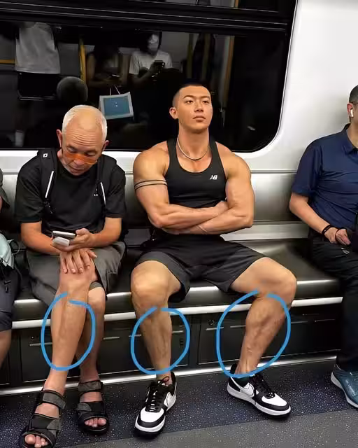 健身男捷運上超吸睛,雙手交叉置於胸前,肌肉雄厚,她拍下分享定睛一看嘆了口氣:還沒有旁邊老大爺健康