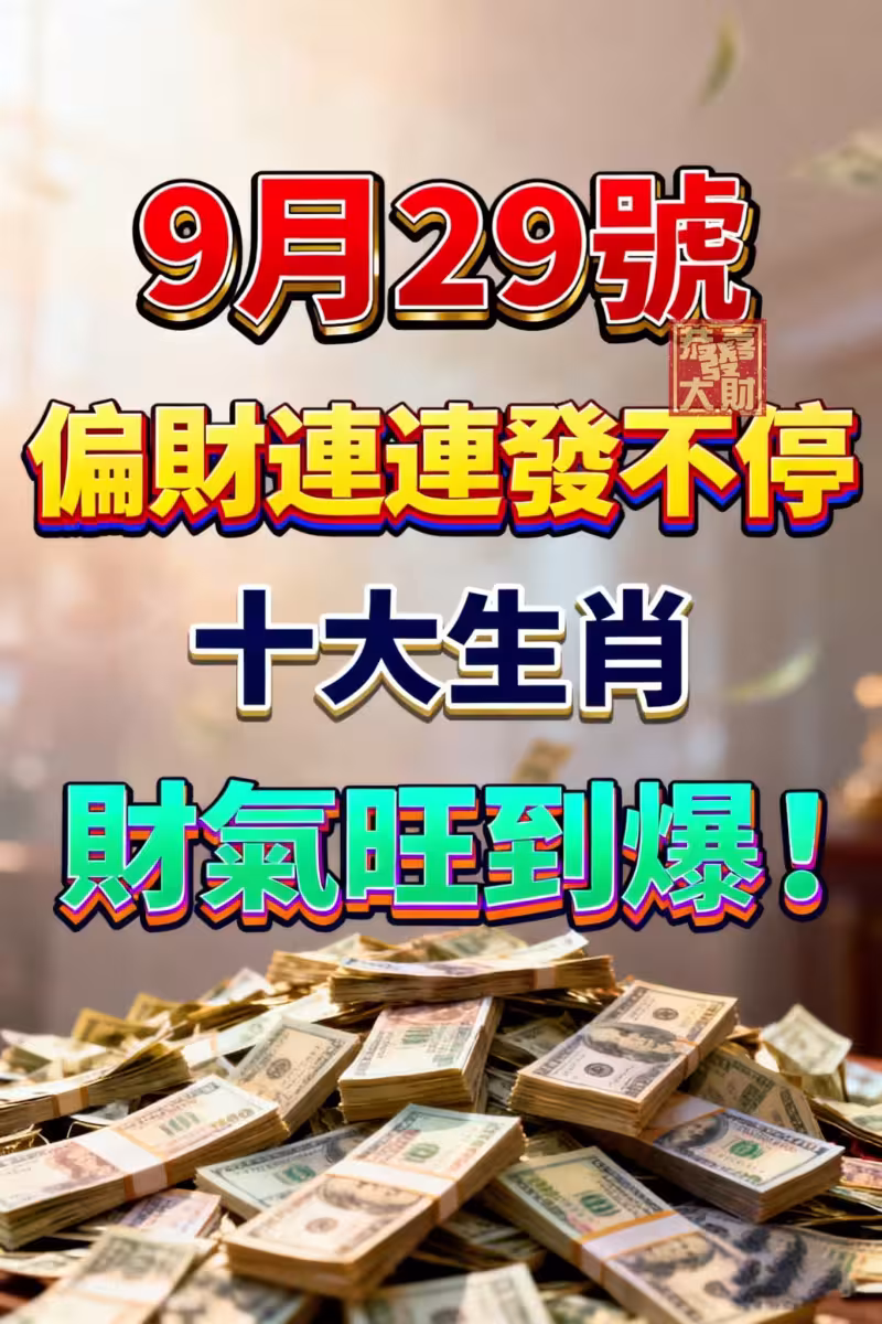 9月29號,偏財連連發不停,十大生肖財氣旺到爆!