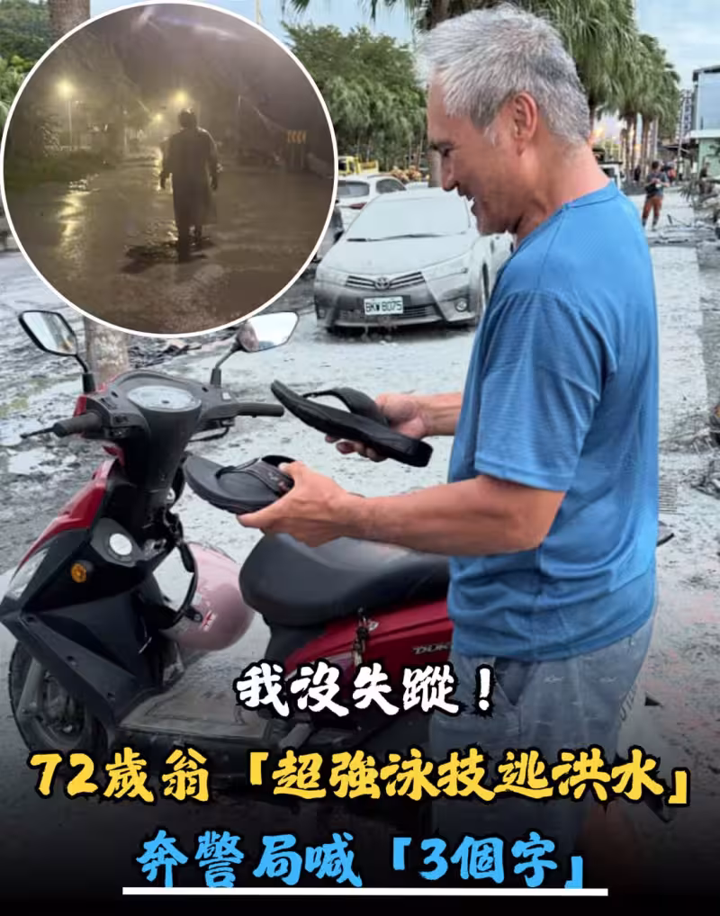 我失蹤了! 72歲翁「超強泳技逃洪水」,奔警局喊「3個字」超震撼:只「靠背黑色支架」