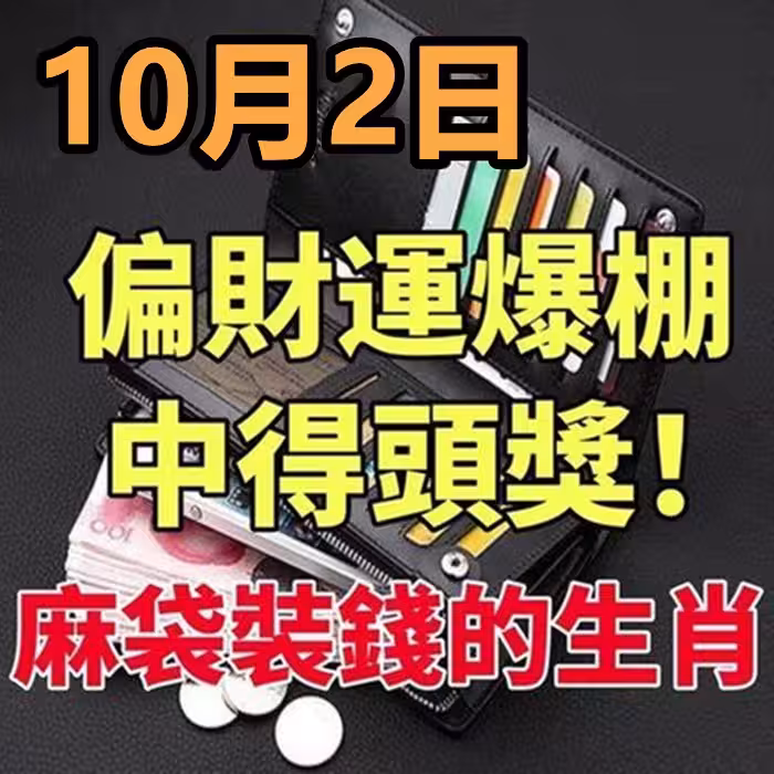 10月2日偏財運爆棚,中得頭獎!用麻袋裝錢的生肖 !