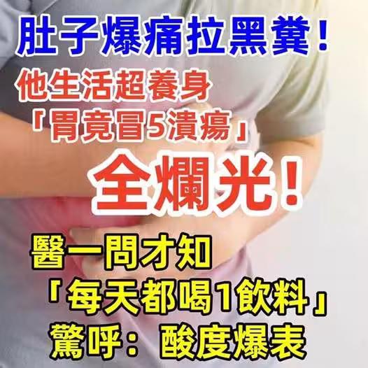 肚子爆痛拉黑糞!他生活超養身「胃竟冒5潰瘍」全爛光!醫一問才知「每天都喝1飲料」驚呼:酸度爆表!
