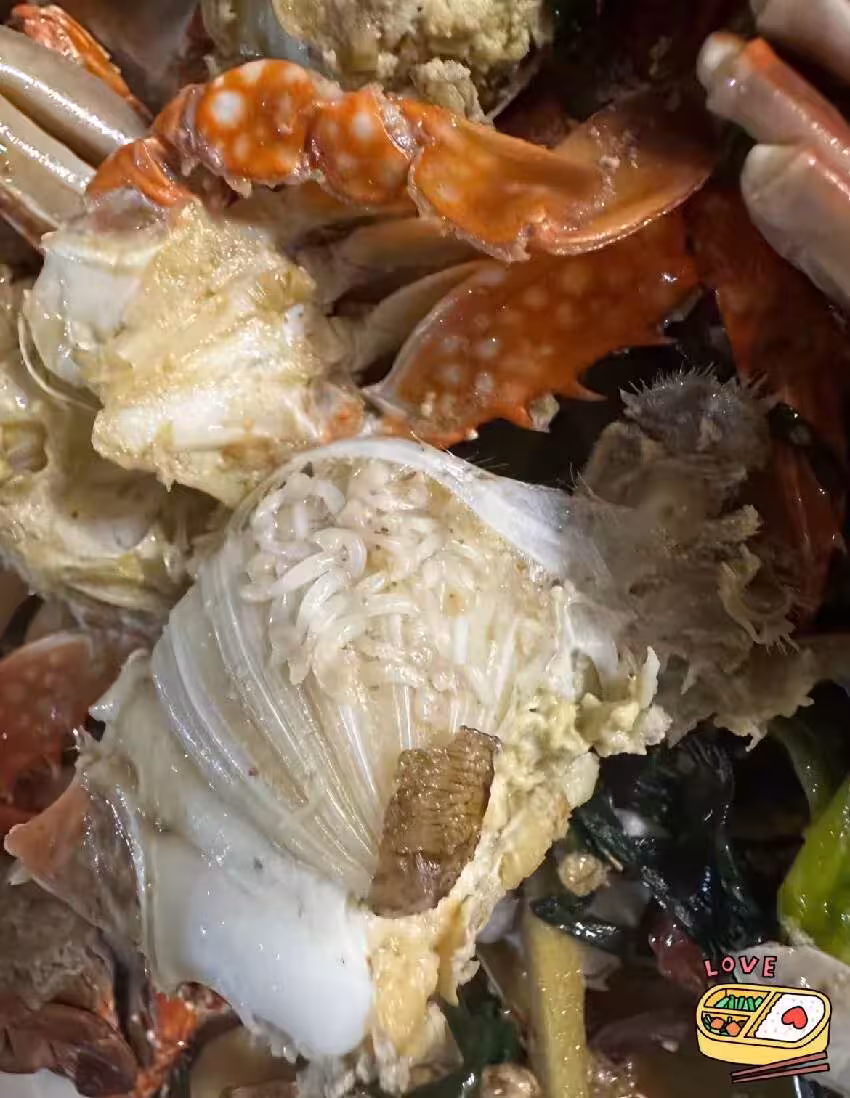 螃蟹蒸熟後打開「一肚白蛆」瞬間倒胃口,她火大PO照「連鍋一起扔了」網狂刷不識貨:水質好才有