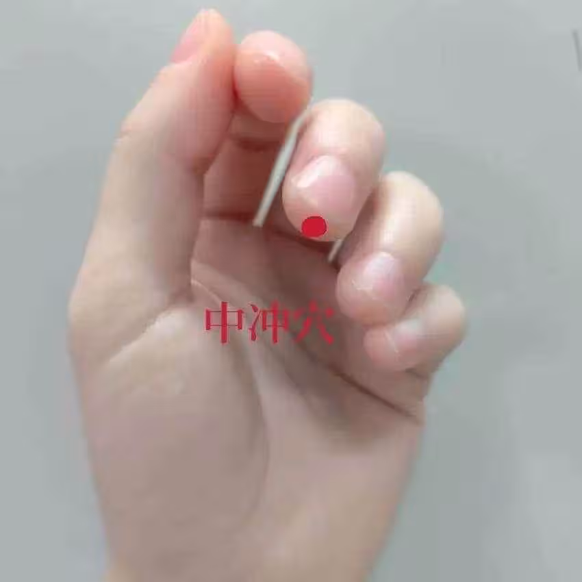 中指對應人體心包經,心包經的高熱之氣由中指上的中沖穴衝出體表,故而該穴有清心泄熱的作用。