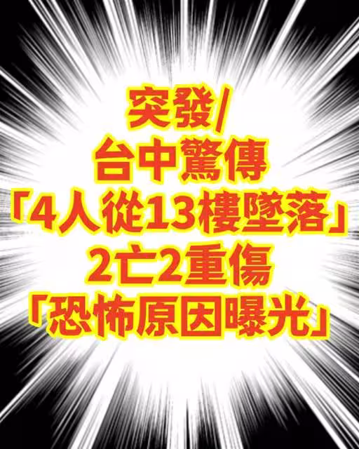 突發/台中驚傳「4人從13樓墜落」!2亡2重傷 「恐怖原因曝光」