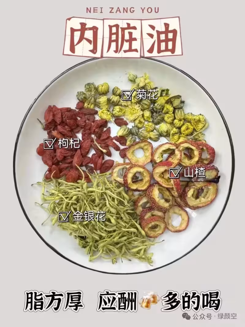 山楂和金銀花強強聯合,刮油能力max,菊花清火氣,枸杞護護肝,應酬多的寶子們快把這款茶安排上,第二天醒來肚子平坦又舒服,整個人都通透了!