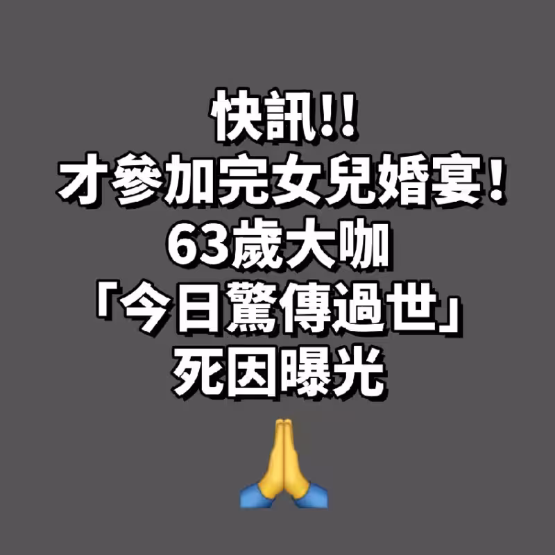 快訊/才參加完女兒婚宴!63歲大咖「今日驚傳過世」死因曝光~