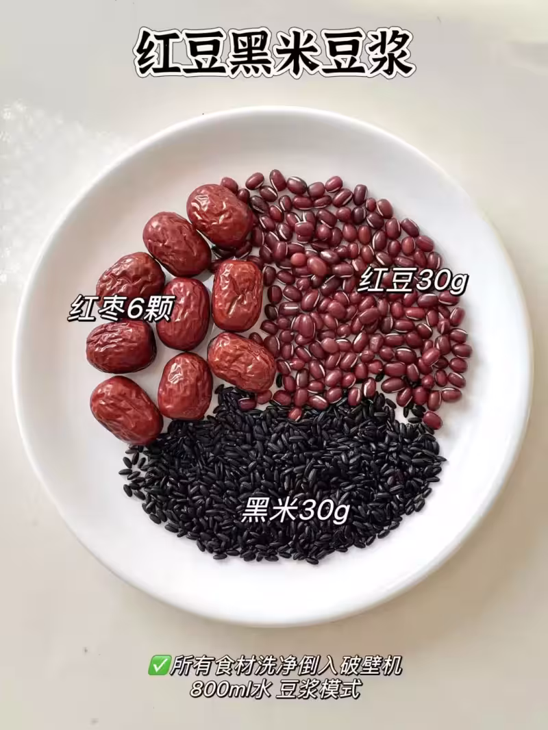 ☑️食材:紅棗6顆、紅豆30g、黑米30g