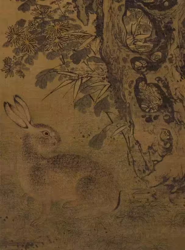[明]徐霖《菊石野兔圖》(局部)。圖源:網絡
