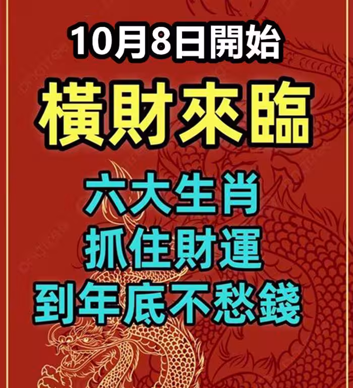 10月8日開始橫財來臨,六大生肖抓住財運,到年底不愁錢!