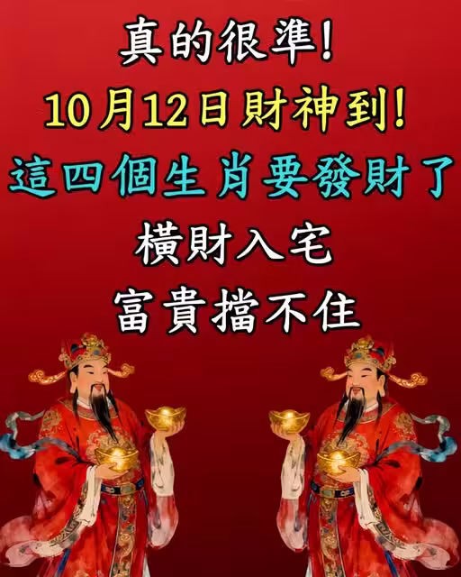 10月12日財神到!這四個生肖要發財了,橫財入宅,富貴擋不住